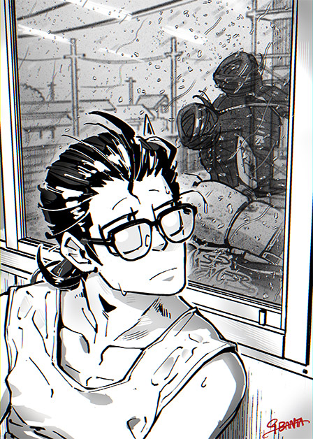 容赦なく激しくなってくるのを肌で思い知りながら、焦る心のままに足を動かす。あっという間に映し出されていく波打つ空をばちゃりと散らし、腕は額、より正確に言えば眼鏡のすぐ上にあてて少しでも視界を確保する。